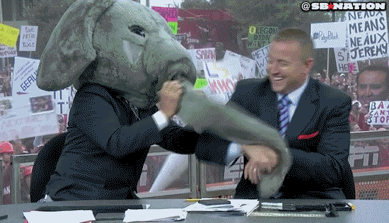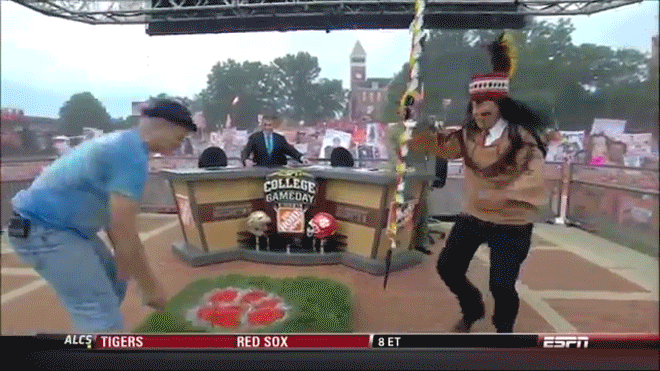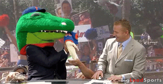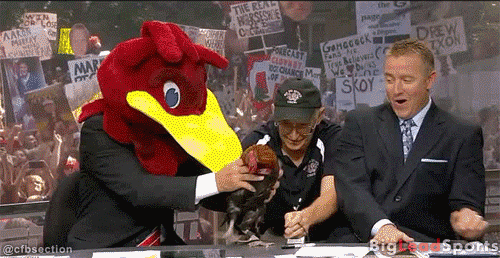 8. Corso dressed as a GameCock and scaring Herbstreit with a real life Cock