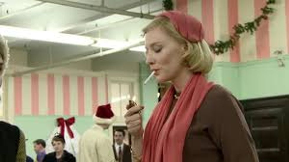 When two women, the titular Carol and the younger Therese (played to perfection by Cate Blanchett, the goddess of my life, and Rooney Mara, respectively) fall in love, the spark begins in a dull, mechanical department store shuffling out toys to children and indifferent parents. Perspective is everything in this film, via frosty windows or cold space in general.