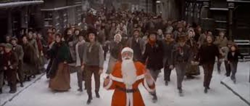 The weirdness has a heart, don't get me wrong, which makes it all the more endearing. Hell, I laugh hysterically at Albert Finney's outright strange high nasal delivery, but then I choke up during the final musical number where the newfound Scrooge engages what seems like all of Victorian London in his rediscovered love, dressed as Santa for goodness' sake. Look at that title image! Come on! You're already grinning, aren't you?