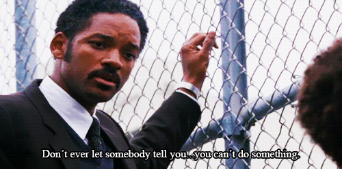 Will Smith's character, Chris Gardner, said it best. Never ever give up on something you believe in or want to do, and never be intimidated into backing down. If you have a dream, stick with it and work hard.