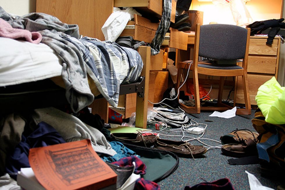 There's nothing worse than a messy roommate. Things start to smell after a while and if it's gotten to that point, your side is overdue for a cleaning. Be courteous to your roommate, and the people who visit your room for that matter, and clean up after yourself. The room doesn't have to be sparkling, but you should be able to see some of the floors.