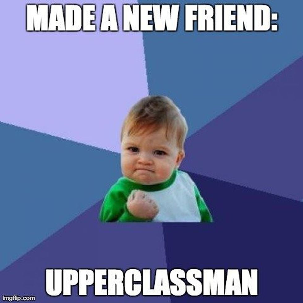 The upperclassmen know what is going on around campus. They know most of the teachers, best places to eat, what classes to avoid, some organizations on campus, and a plus, they may have a car! The upperclassmen know the ropes of the college, and will help you through anything and give you the best advice about that college. They will be the ones to tell you either to leave or stay.