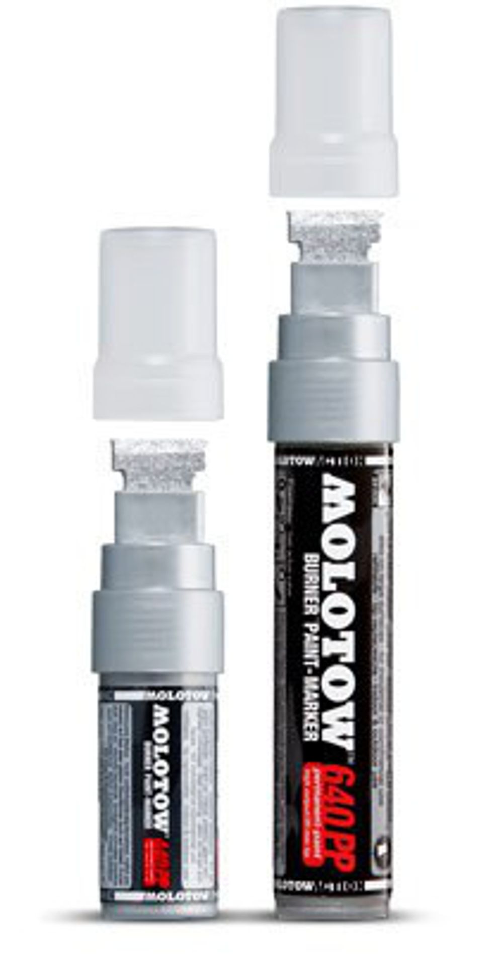 This paint in this large marker is cannibalistic. It will eat through any regular oil paint it encounters with no mercy. Perfectly fits in the average pocket for discreet destruction on a smaller scale.