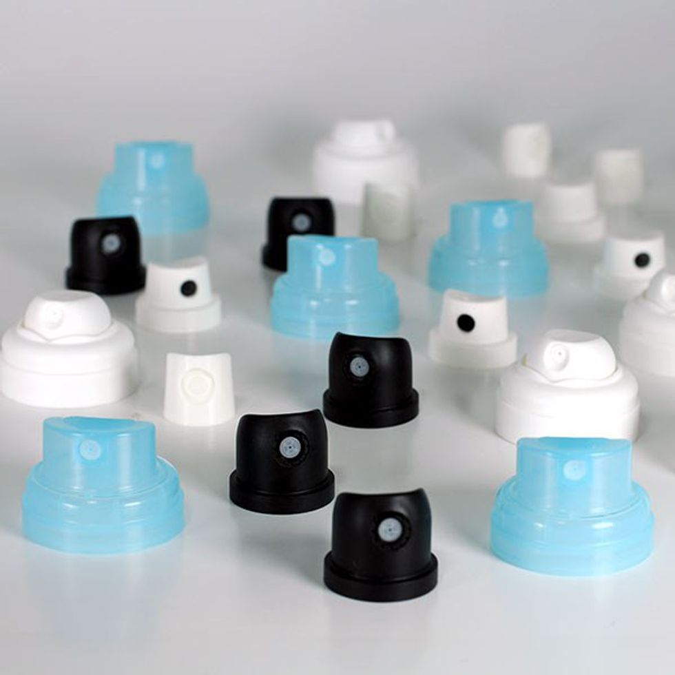 For f*ck's sake, this part of paint history still pisses me off. Back when graffiti was truly taking off, companies like Krylon and Rustoleum changed up their valve systems. Krylon uses this pussy fan-tip bullsh*t, so Rustoleum is your only go-to paint when it comes to keeping it on the cheap, compared to all this fancy Molotow stuff I've been preaching about. Seriously, this cap sampler pack will seem like a Godsend when you hit up a Home Depot for the $4 Painter's Touch can sales, for all you white knight writers who still pay for your paint. From the fattest of the fat to the delicate and skinny, this little fellowship of caps will serve you well. Once you use them enough, and the paint has fused with their architecture, they can be dremeled into a nice necklace, too.