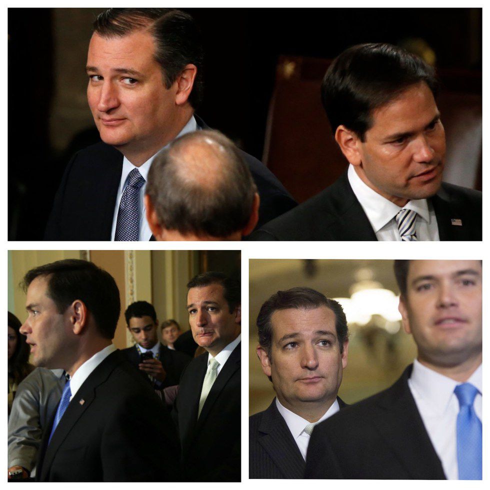 7. Ted Cruz's facial expressions toward Marco Rubio which every teen who has a crush will understand.