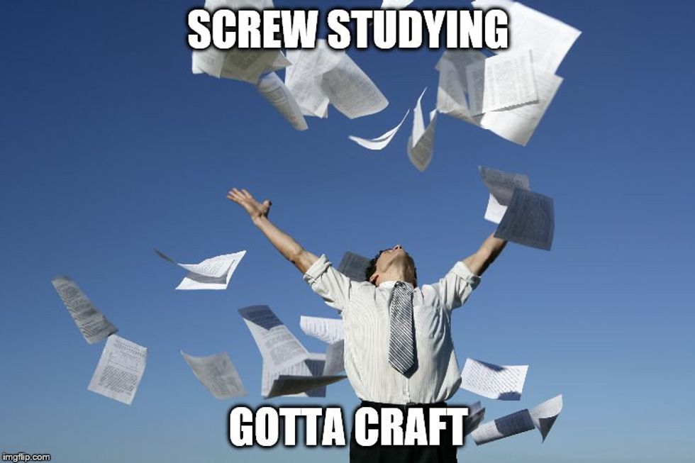 You have a test coming up but you have your priorities straight. Crafting comes first.