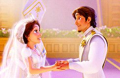Rapunzel looks absolutely gorgeous in her gown and pixie cut. Few can resist a dashing Eugene Fitzherbert.