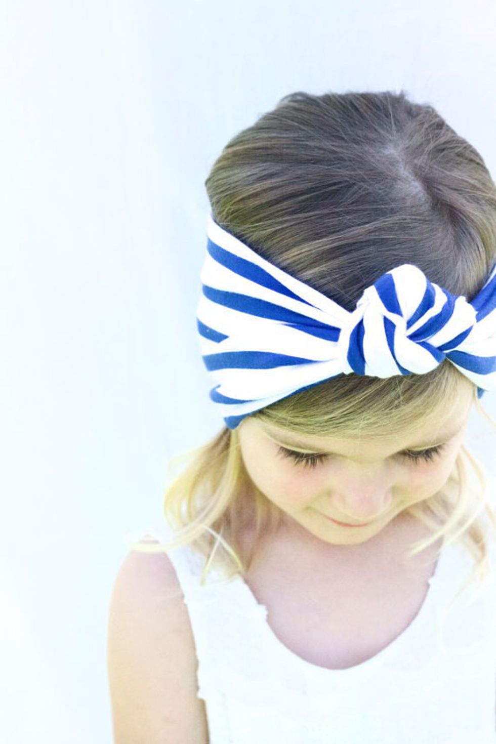 1. It's $16 for this blue and white striped turban, sold by the Mama Owl Shop, which specializes in turbans for babies, toddlers, and even adults.