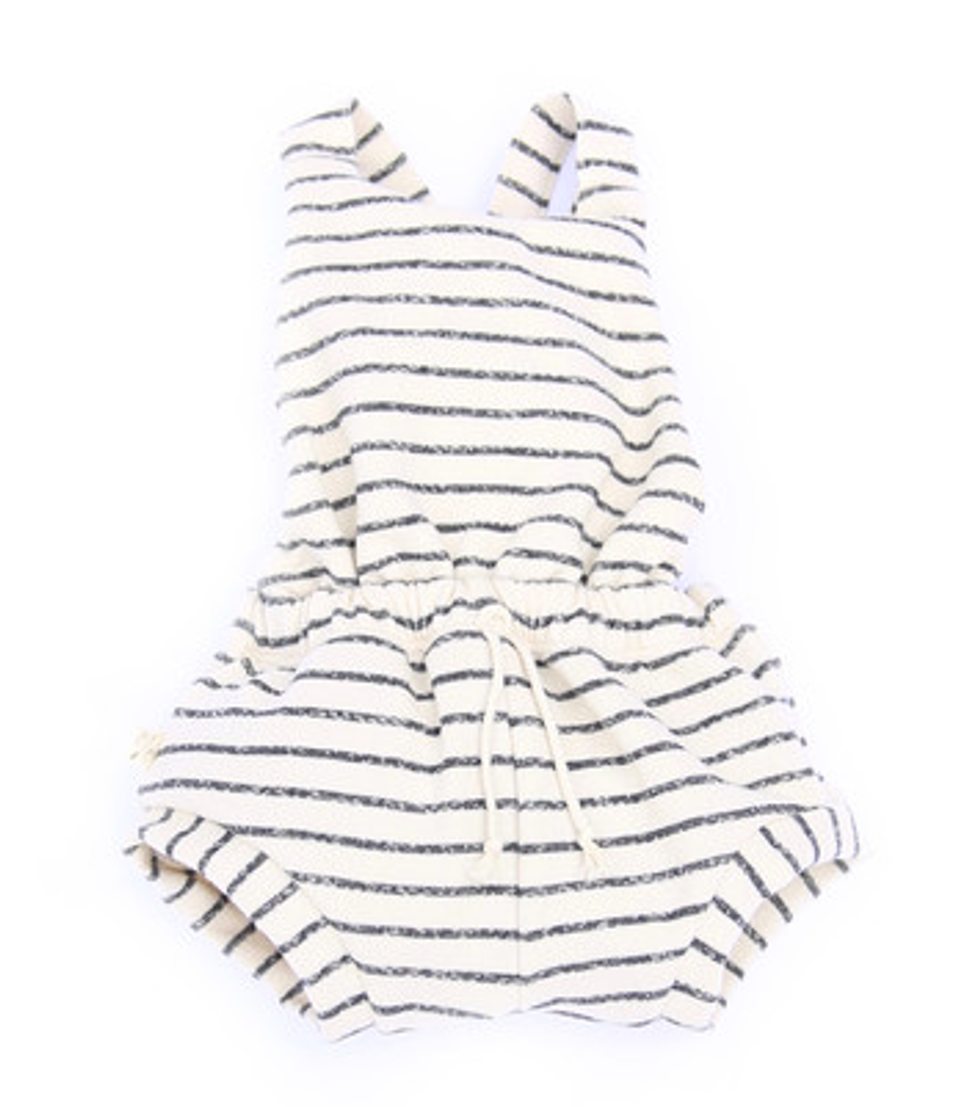 5. It's $48 for this thick striped romper, sold by Childhoods Clothing (originally found on Etsy but now moved to its own website), which specializes in selling baby/toddler lounge-wear.