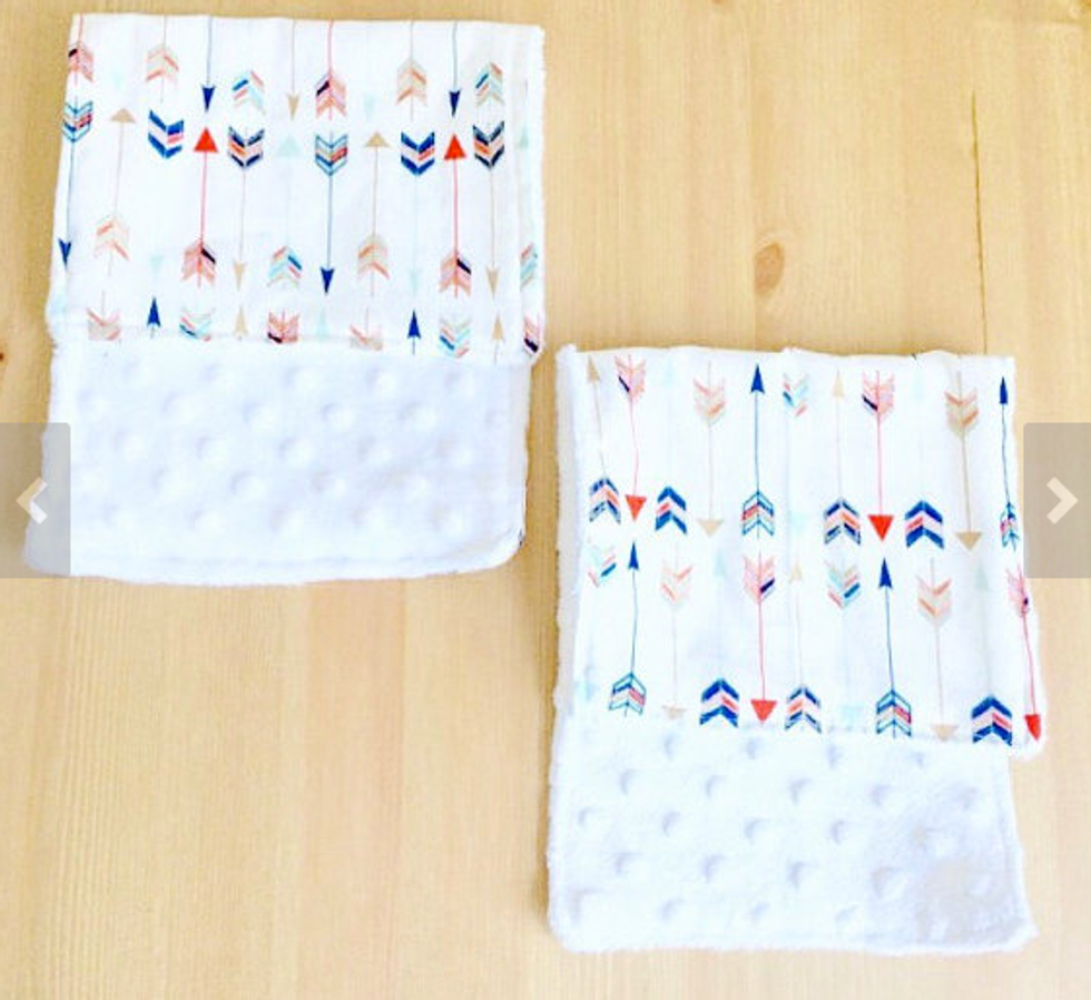 12. It's $16 for this set of two minky lined burp clothes, sold by Bizy Belle, which specializes mainly in blankets and car seat covers.