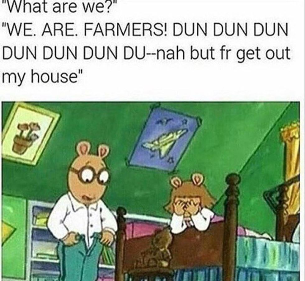 To trace back at the origins of any meme is merely impossible. There is no set blame for who started such a funny craze, but that does not matter. The images, with the addition of text, adds to the revitalized classic animated show "Arthur." The show revolves around Arthur the aardvark and the typical trials and tribulations a young adolescents deals with on a daily basis. Recently, the show has taken a new turn and has become a hilarious meme that features the characters doing made up things. The list below is some of the funniest I have ever came across.