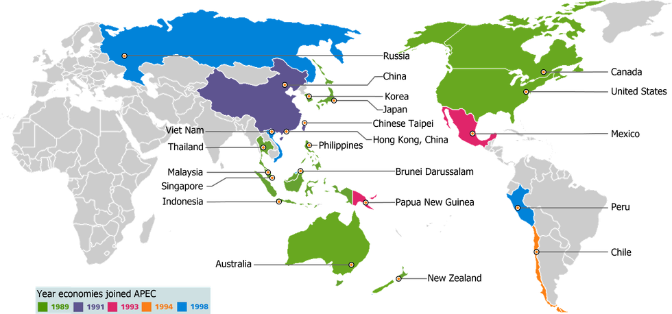 The Asia-Pacific Economic Cooperation (APEC) is a forum for 21 member countries that promote trade liberalization throughout the Asia-Pacific region. The group makes up about 60% of the world's GDP.