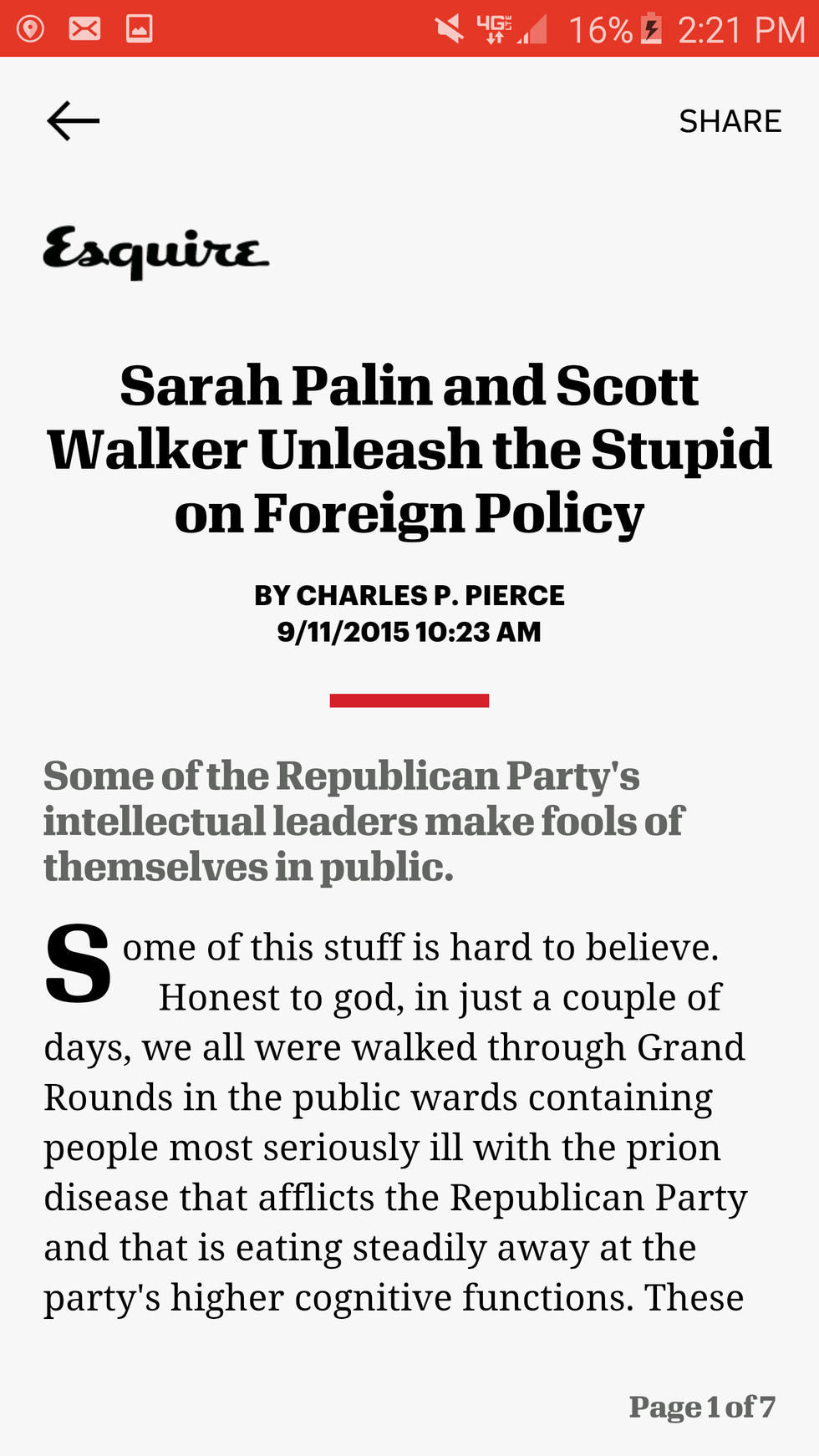 This is the app I use to receive updates on world news. Flipboard has a wonderfully simple and straightforward design that allows you to “flip” through pages of articles really quickly. What I especially like about Flipboard is how it compiles articles from many different sources, allowing me to have a broader exposure to various news sites, all in one place. Flipboard has several categories to choose from (News, Science, Travel, etc.), and gives you the option to prioritize which categories appear first when you load the page.