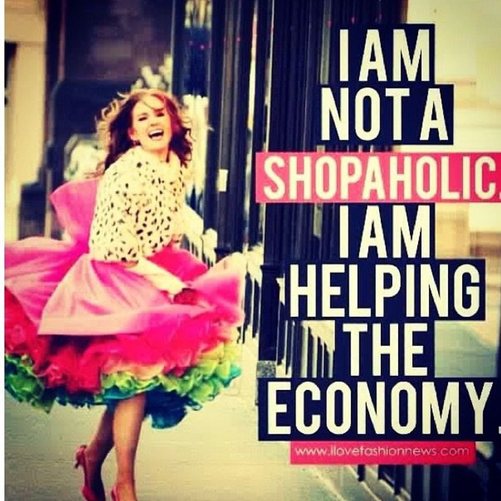 "Oh I could use this for this event or I could get this for my friend," but honestly I'll keep it for myself. Stop! As much as you might be helping the economy, you could be spending that money on food or rent that is necessary. Make a budget and make sure you are only spending as much as you make.