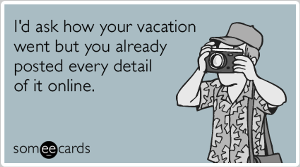 You've come to accept you aren't going back anytime soon and just have to relive it through pictures and memories. Posting every photo on social media is an acceptable way to do so.