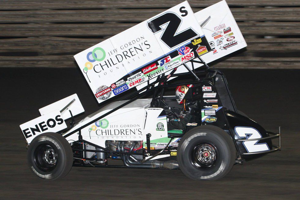 Shane Stewart, driving the Larson-Marks car number 2S sponsored by Jeff Gordon's Children's Foundation, had his turn to qualify on Wednesday night. 12th quick in time trials for the night with a time of 15.143 seconds around the half-mile track, Stewart would start 6th in the second heat of the night. Shane drove his way to a third-place finish and picked up a position in the Wednesday night A-main. He would start outside of row two(4th) in the A-main and on lap 11, took the lead with Donny Schatz right behind him. Stewart would lead the rest of the 25 lap race. Shane's 12th place in time trials combined with his feature win put him at 472 points, and after Thursday's events were done, Stewart had the 8th most points putting him as the 8th starter for the Nationals feature event. On Saturday, Stewart had made his way into the top 5 before the mandatory fuel stop on lap 25. Around lap 40, Stewart was running in the 4th position when 3rd place driver Kerry Madsen pulled into the infield ending his night. This gave Stewart clear space to catch up to the top two cars, Donny Schatz and Jason Johnson. Although Shane Stewart could not pick up a win, he was able to come from the 8th starting position to a podium finish and was not far behind the top two drivers.