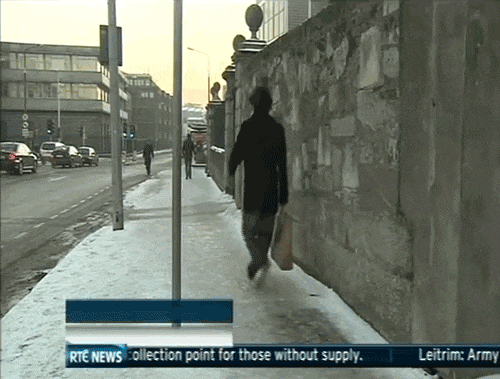 Characterized by an unusually fast body movement straight towards the ground, the collapse often occurs when least expected. It is not necessary for there to be ice for the collapse to occur, as most collapse individuals find themselves to collapse for no apparent reason when walking. For example, Betsy is walking along a freshly paved sidewalk, with no jolts or cracks in it. She is making her way along the path when suddenly, her legs give out and she appears to have not tripped, but collapsed under her own weight and onto the ground.