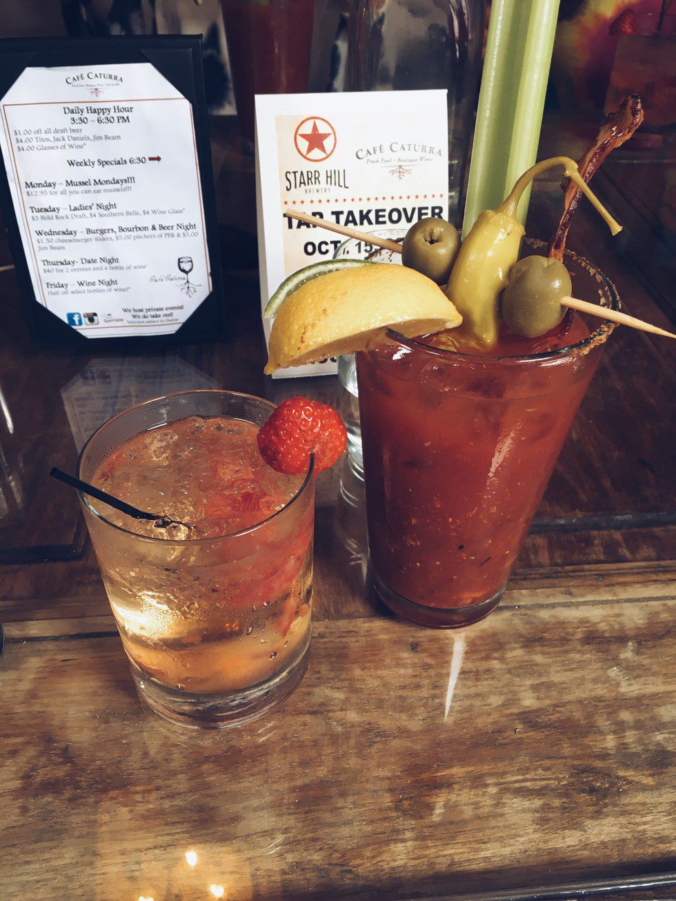 Back within walking distance for those living in or near the university community, Cafe Caturra on The Corner offers the best brunch drinks menu with a stacked high Bloody Mary and other fruity cocktails that will compliment any item on their menu perfectly. This is a great place to take your parents when they visit you in Charlottesville because of the great seating choices of a more secluded upstairs area to enjoy guests, or the patio, where you can sit outside and do some serious people-watching while you enjoy your food.