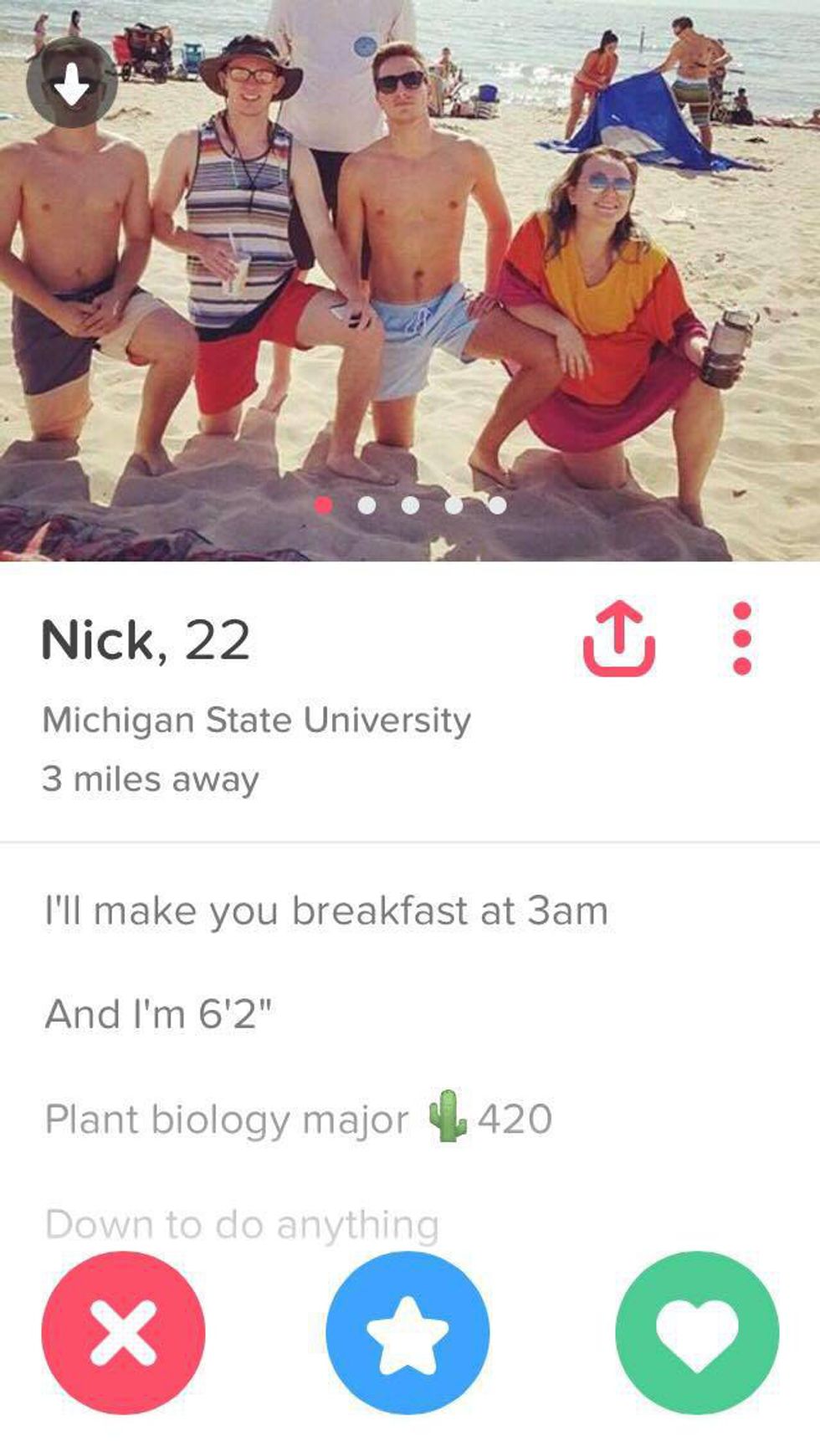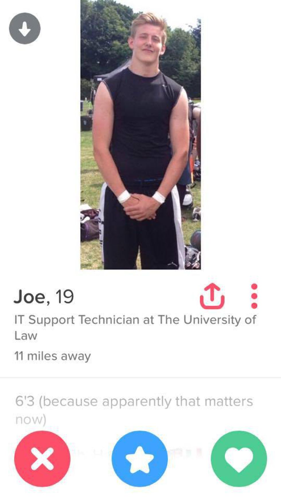 The guy who has his height as the only feature of his profile, just in case any girl was questioning whether or not he was too short for her I suppose that's a legitimate question, but for some weird reason, they're all 6'3"???