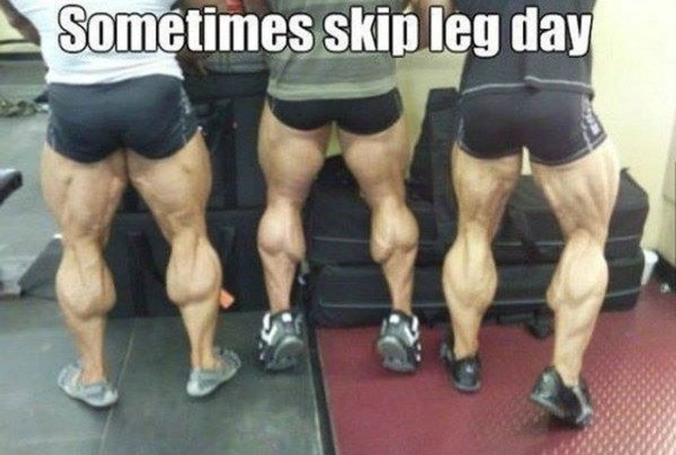 These guys are really a subset of the Bulbs, but they put an extra amount of effort into making sure they have huge biceps. I have personally seen some Bicep Bros at the campus gym, and they amaze me. These guys can do a full workout of only biceps. Preacher curls, incline curls, concentration curls, these guys do it all. Their dedication to the one muscle group that serves no purpose other than to train itself is humbling to say the least3. The Guy Who Got the Leg Day Memo.