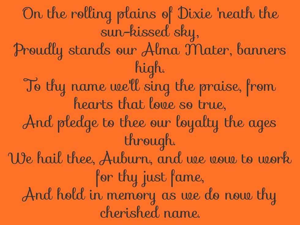 One of my favorite things is hearing the entire stadium say "Waaaaar Eagle" at kickoff. It is also my favorite phrase that can be used in any situation. Won the football game? War eagle to that. Failed a test? War eagle to that, too.