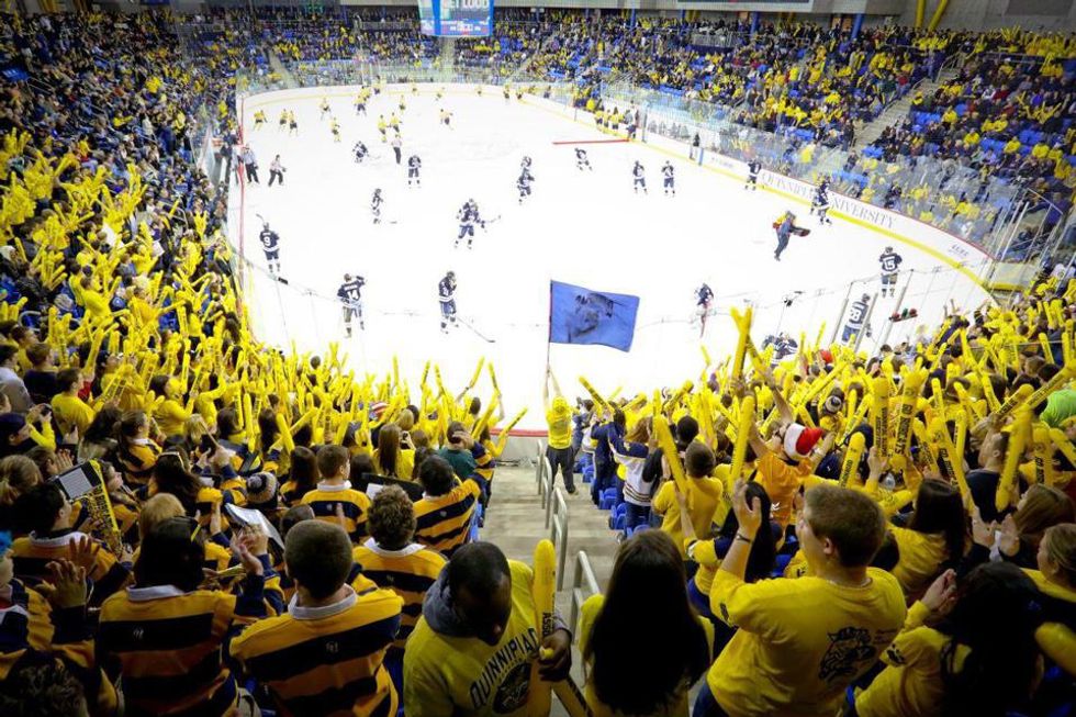 The Yale vs. QU hockey game is one filled with chants and a packed crowd (if you ended up getting a ticket that sold out in .00000003 seconds or pawned it off of someone after your disappointment). Our biggest rivals by far, and it might be just because of our close proximity, or just that they're Yale. Yuck Fale.