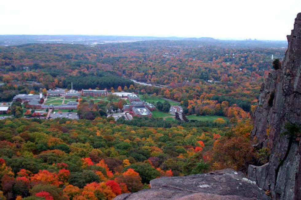 Everyone at Quinnipiac knows the legend of that giant mountain looking over campus from Freshman Orientation. And most likely everyone has made the steep climb to the top. It truly is a breathtaking sight to look over campus from the top of that mountain. And when the leaves turn colors in the Fall it is quite the backdrop to our already beautiful campus.