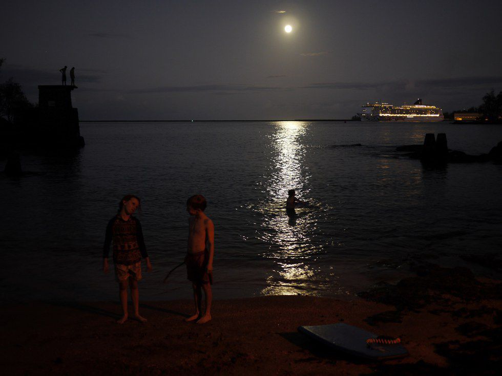 Groups get together and go swimming at night - whether it's at the beach or a lake, night swimming is always a thrill.