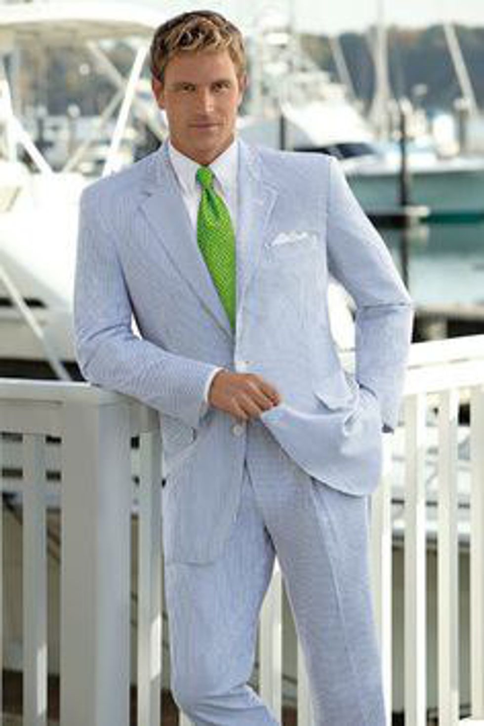 Seersucker attire is common during the warm montsh because of "its crinkled texture and breezy quality. Seersucker’s texture creates a space between the skin and the fabric that helps improve heat dissipation and promote air circulation, making it perfect for summer dresses, suits, pants, and jackets."