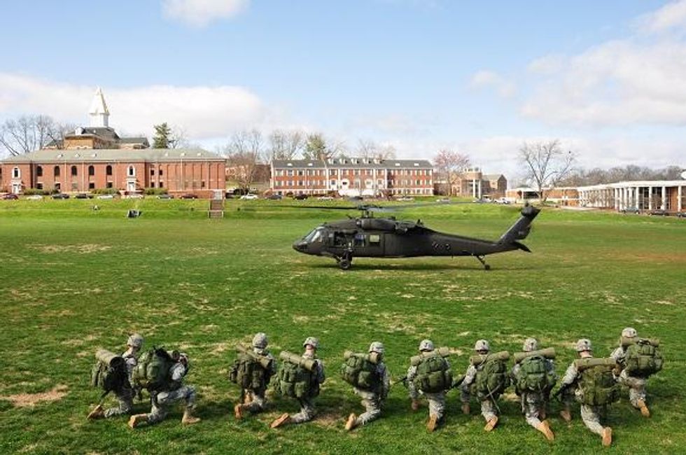 The drill field is the center of campus and is used for intermural sports and a field for the army to practice drills on. Occassionally, there are even helicopters landing in the middle of it.