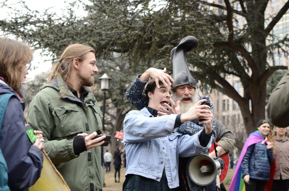 We left the Mall shortly after the speech was over, wondering the streets and moving from group to group, getting a feel for the rest of the crowd. We heard Trump supporters yelling at democrats, democrats yelling back. We saw signs promoting Christianity, letting us know that Jesus loves us despite our sins. In case you didn't hear, Vermin Supreme was there. We saw him too.
