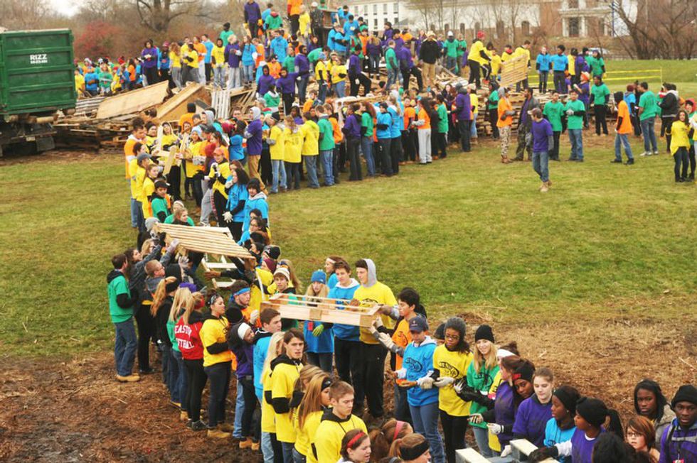 On Tuesday, the senior class is excused from class all day in order to build our bonfire.