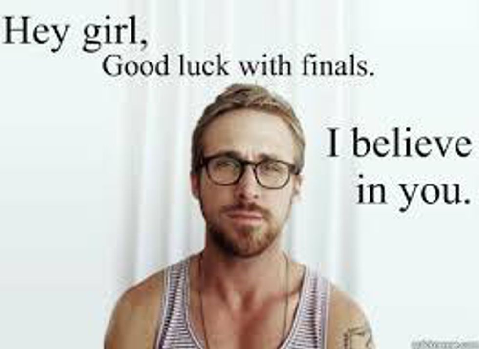 4. While there will be people stressed beyond belief during finals week, you will feel relief. You have gone to every class and paid attention. That is where the true knowledge is obtained. Even Ryan Gosling believes in you...so what could go wrong?