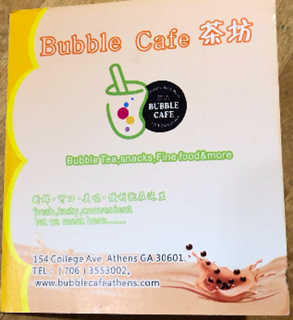 The Bubble Cafe is located on College Avenue, just in perfect view of the iconic Arch. I understand that tea isn't for everyone...but you know, you put India and England (from the colonialism) and Georgia (peach) sweet tea together, you get me. So it's right up my alley. Bubble Tea (AKA boba milk tea or boba) is a Taiwanese drink invented in the 80s; it's usually tea mixed with milk or fruit, and often generously mixed in with tapioca pearls. And if you're into choices, get ready for the variety of flavors available to you.