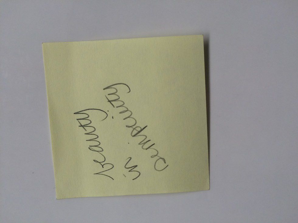 Fast forward back to the first day of classes, me sitting in my room looking at my post-it note. The meaning of this activity and the power of the words scribbled on the paper in front of me shook me at full force. Beauty in simplicity.