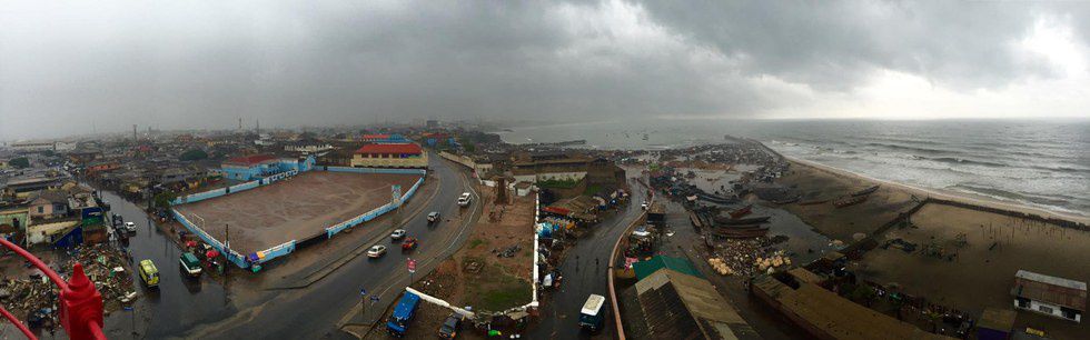 As our bodies adapted to the four-hour time difference, we began exploring the city of Accra. Everywhere we went, we were greeted with a friendly smile and a energetic, “Akwaaba,” which means welcome. We tried the delicious local foods which made our mouths burn because of the spices used. We visited places like the Aya Center, a center that houses temporary international students. We toured the city of Accra looking through the windows of our bus due to torrential downpours. As we drove along the coast, we passed a tall lighthouse that caught our eye. Maxwell explained the lighthouse was built in the early 1800’s by the British and was used to manage the transportation of slaves. He was pretty sure we were able to climb it, so out of the bus we went. We sloshed through the puddles in our flip-flops to climb a unique piece of African history. Although the inside of the lighthouse was dark and the stairs were extremely narrow, we made it to the top (97 steps later). The sound of thunder boomed around us as we squinted through the rain at the panoramic view of the city. Something about the dreary weather made the experience much more real and memorable for us.