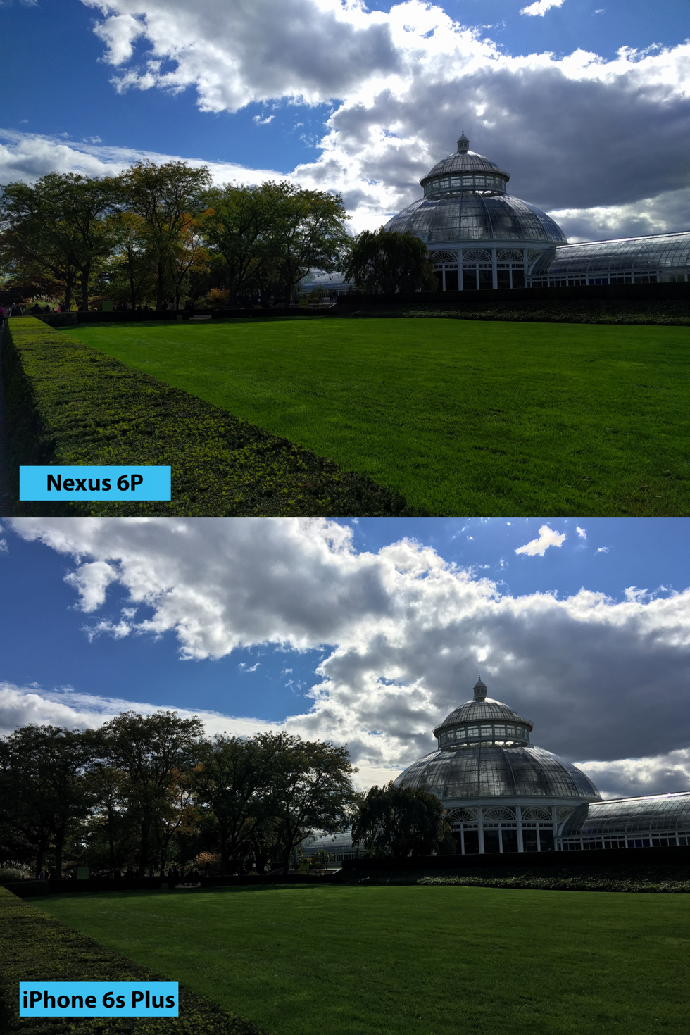 Superior Camera: Beyond the above specs, it gets more complicated to compare exact quality, but overall they appear of similar quality. The Nexus does lack Optical Image Stabilization, whereas the iPhone does have it, which may put it up just slightly, however both can take great photos in low light or darkness. The Nexus 6P was able to take a picture of just stars in the middle of the night with it coming out clearly. The regular iPhone 6S lacks this feature. Google has said that OIS is unnecessary with their phone and some reports have said that the Nexus instead as Electronic Image Stabilization which effectively removes this advantage.