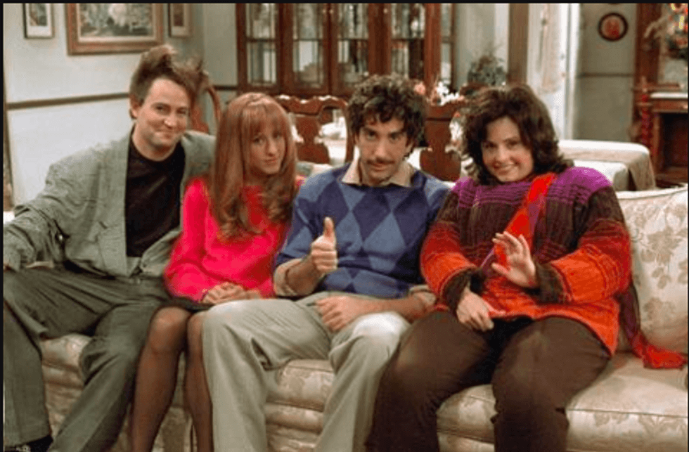 #tbt Chandler’s Wolverine hair, Ross’ killer "moustache," Rachel’s pre-plastic nose, and my personal fave, fat Monica.
