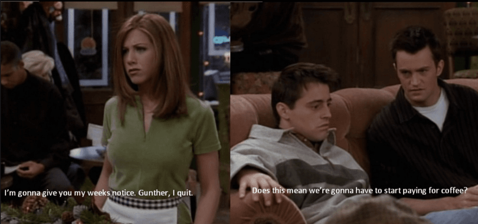 Gunther: “Do you remember when you first came here, how you spent two weeks getting trained by another waitress?”