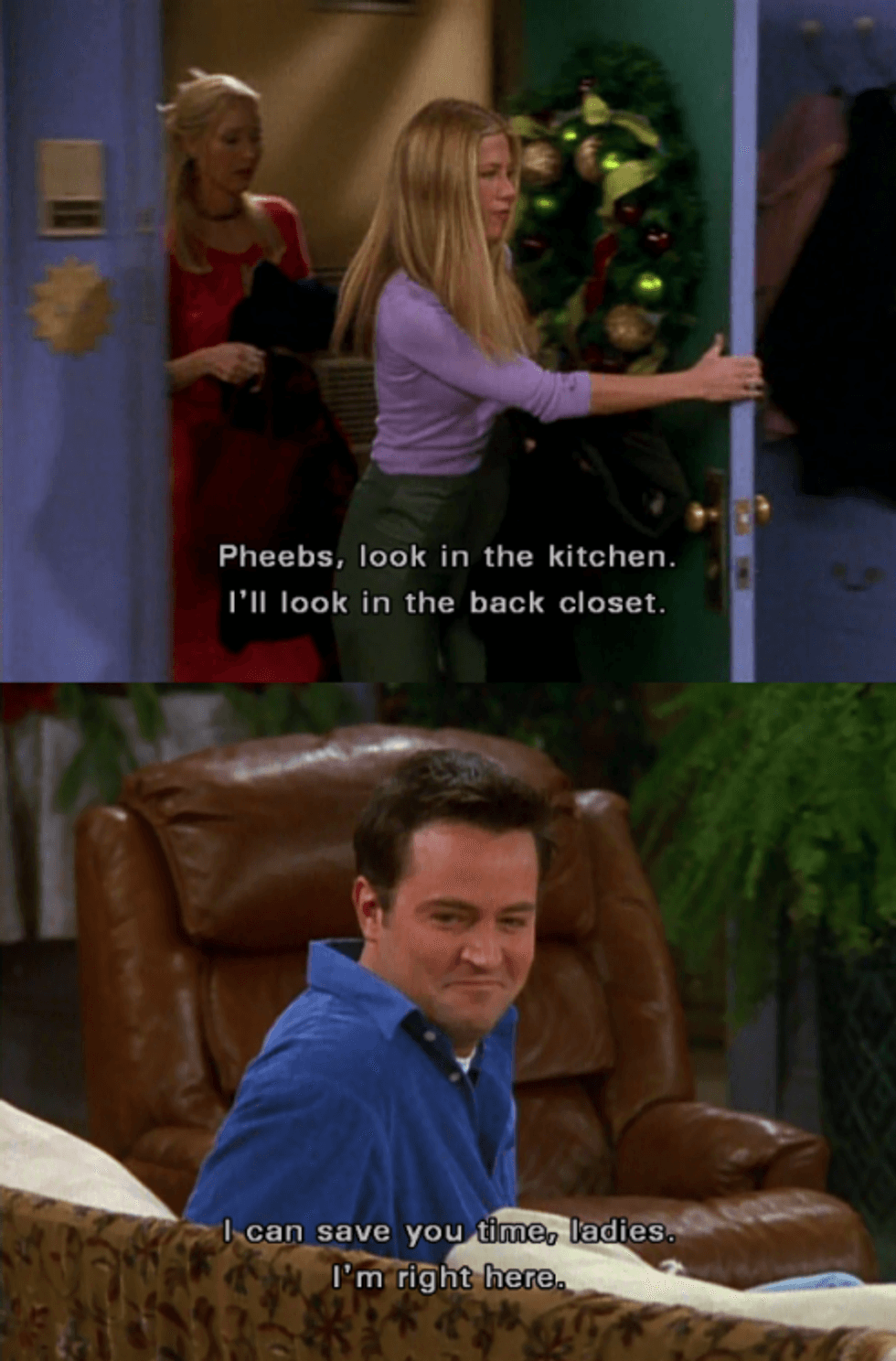 If Chandler’s speech doesn’t make you ugly cry or at least “Awww” for a minimum of four seconds, please reevaluate your emotional well-being. Also, a pretty emotional episode with flashbacks to earlier Christmases. #bonus