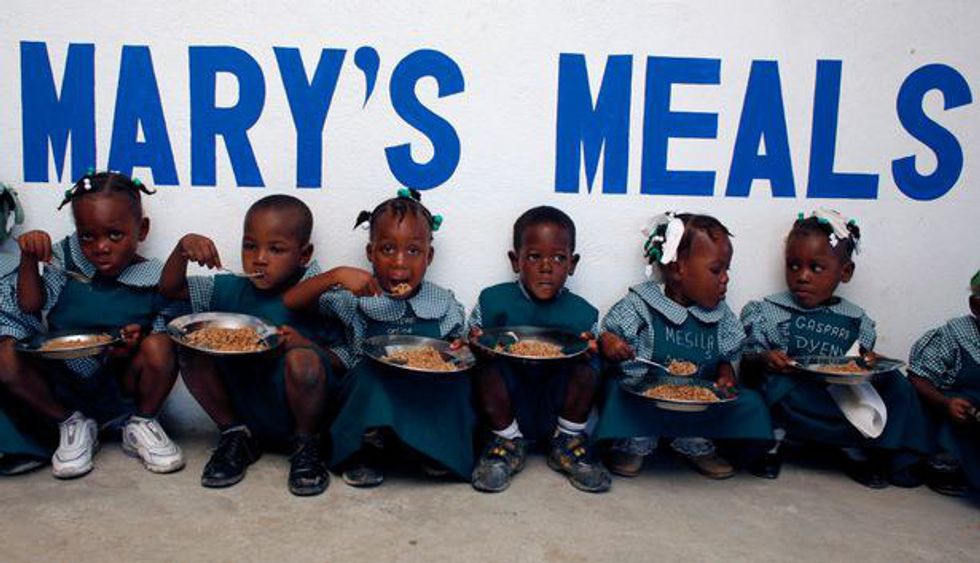 Let the guy/girl who has everything but lunch. Buy lunch for a starving child, that is. Mary’s Meals provides food at school who can't afford it. Check out Mary's Meals Famine Relief and Education.