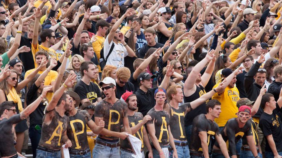 This year I attended my first App State football game, thus experiencing Boone tailgating for the first time. To begin with, there is nowhere more beautiful to spend a Saturday morning than propped atop a parking deck in Boone. With students and families tailgating together, it makes for an interesting time for all. The marching band parades through the deck, and Yosef will even stop in for a visit. While making the trek down the garage to Kidd Brewer Stadium, or commonly known as "The Rock," you are sure to pass a few students you know or friends from home. When you finally get to the stadium, you had better be prepared to stand for the next few hours -- because the 'Neers don't sit for a second once the game begins.