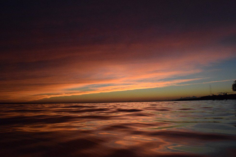 The sky ablaze as the sun set on across the horizon of Black Lake. The water had transformed into mixtures of blues, reds, and greens on this particular night.