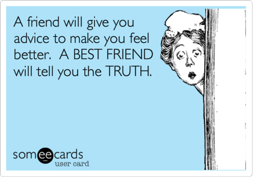 Your friend has seen you through it all - the bad, the good, and the ugly - so they don't worry about hurting your feelings, they tell you the truth. So if you are seeing a guy they don't think is good for you, or need help picking out a new outfit or don't know what to do with your life in general they will always give you their honest opinion. You guys have been friends for too long for them to let you do anything stupid (unless of course you tell them that you really want to). Because in that case they'll wish you luck, let you do it, and will be there for you when it's over.