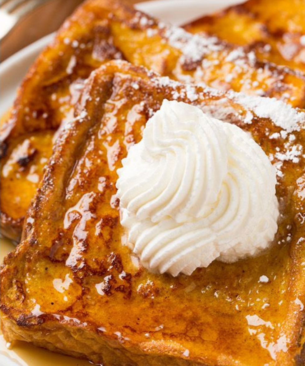 After making pumpkin french toast, the savory smell will travel throughout your home all day long, but it is the taste that will leave you wanting more. All you need is eggs, butter, milk, cinnamon, and thick slices of bread (as if you were making regular french toast). However, the addition of the two key ingredients, nutmeg and canned pumpkin puree, is what really turns this plain French toast into your new best friend. I’m no Rachael Ray, but I personally like to stuff my French toast with whipped cream cheese mixed with a little vanilla and powdered sugar.