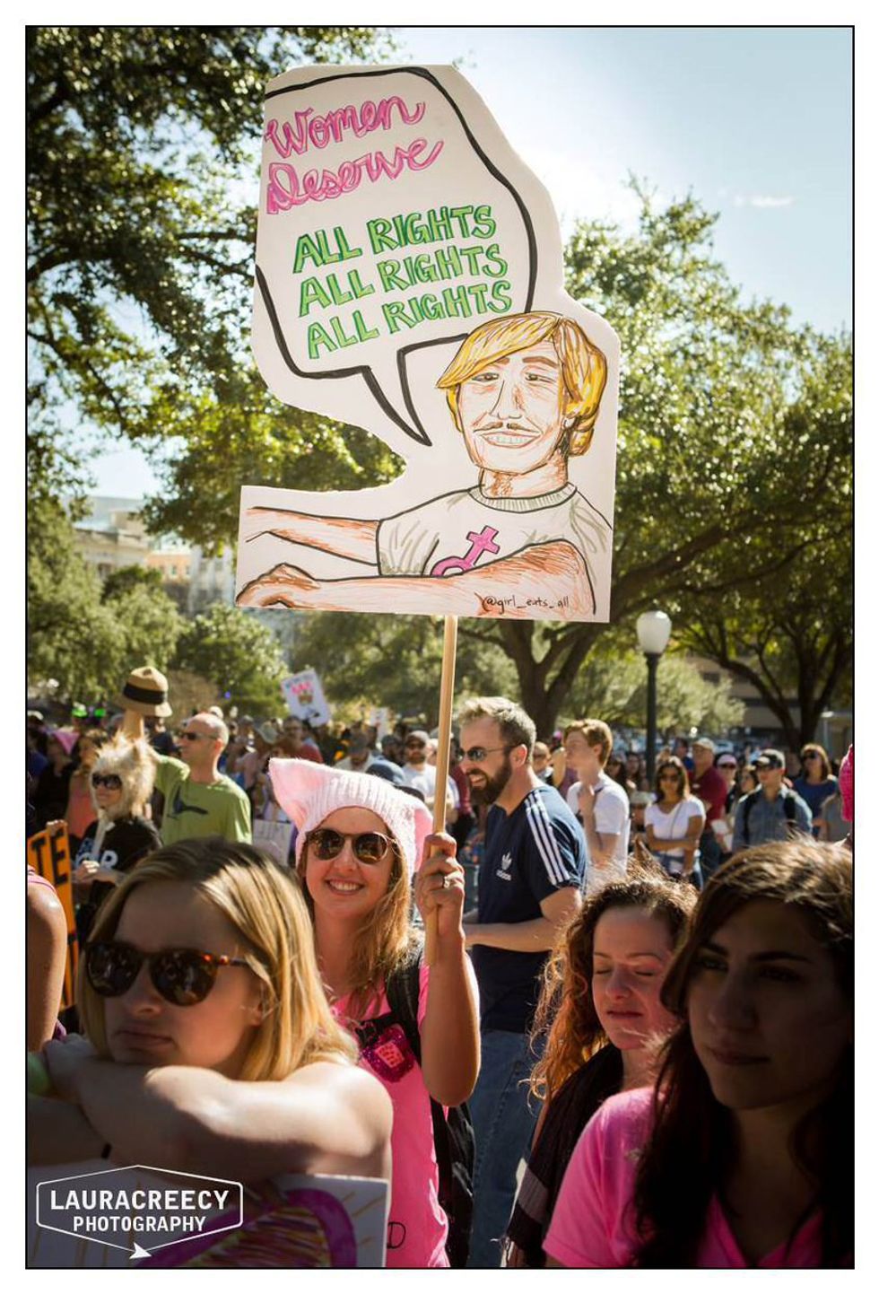 It's such an amazing thing to see men and women of all ages coming together to support women's rights. It goes to show that the world isn't all bad and there are human beings out there who really want to make a positive impact and bring a lot changes to this world. We are strong and we will continue to fight for what we deserve.