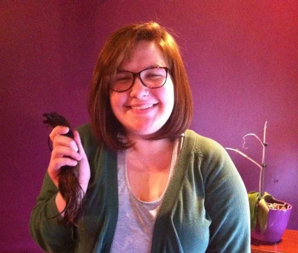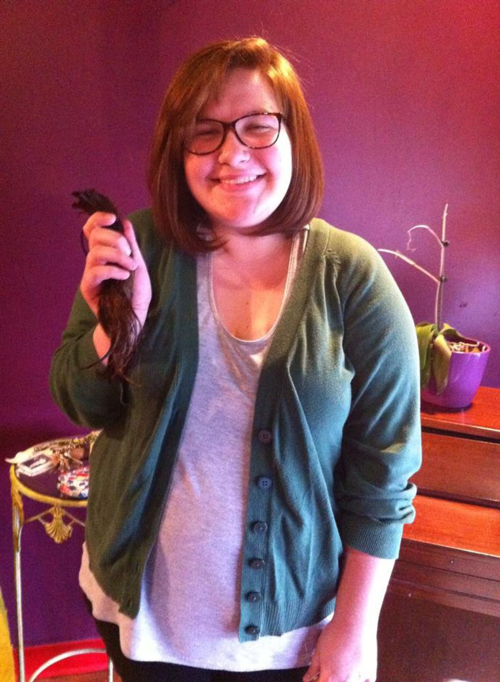 Now, I am 21 years old, and I still love having long, golden hair. But now, instead of keeping my hair long all the time, I have a ritual I practice every few years once my hair has grown long enough. When that time comes, I take the plunge and get "The Big Chop," which means my long locks are cut off, leaving my hairdresser with a 12-inch ponytail each time. So why do I get The Big Chop? So my hairdresser can donate my hair to children in need.