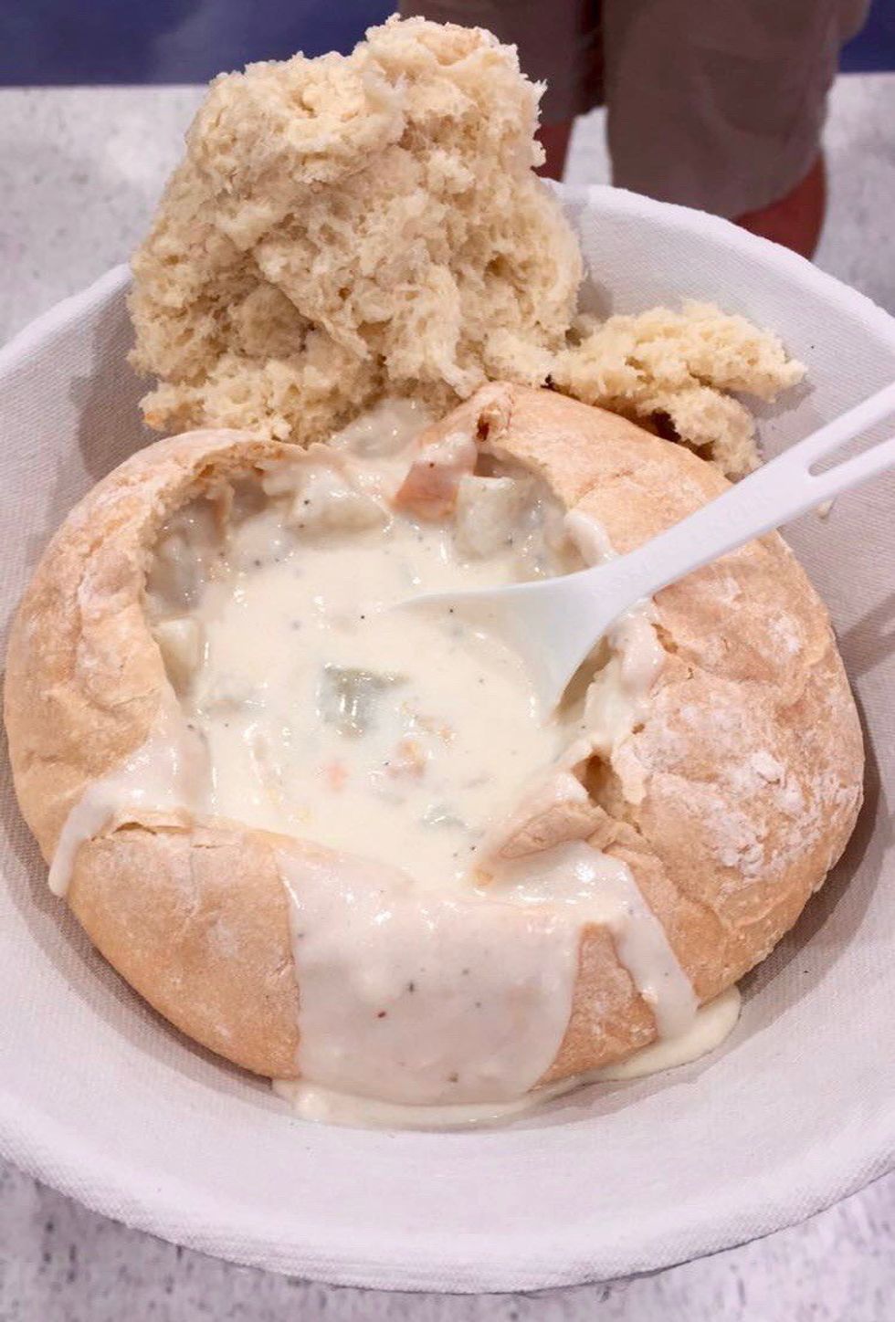 Massachusetts: The chili cheese dog, apple cider donuts, and clam chowder in a bread bowl