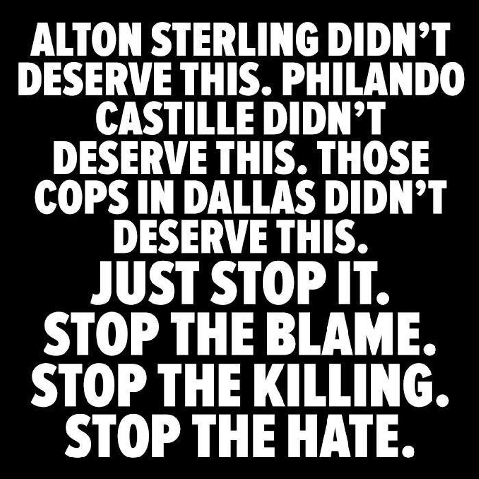 In less than two weeks, there has been a horrific string of deaths that have affected us all some way or another. There have been at least 12 deaths since June 26, including Dylan Noble, Barry Prak, Pedro Villanueva, Delrawn Small, Anthony Nunez, Alton Sterling, Philando Castile, Brent Thompson, Patrick Zamarripa, Michael Krol, Lorne Ahrens, and Michael Smith. To go in-depth with each and every case is nearly impossible, so I’ll focus on only the incidents in Baton Rouge, Missouri, and Dallas.