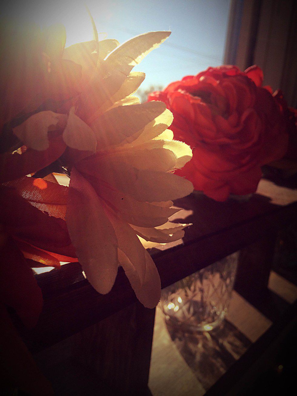 My dad and I made this jar contraption this summer. I am fond of this picture because it reminds me of the great time we had constructing this together. My dad is a gem and he does nothing but perfection in his work. I thought this picture played off of the sun really awesomely! The jam jars have a great effect when sun shines through.